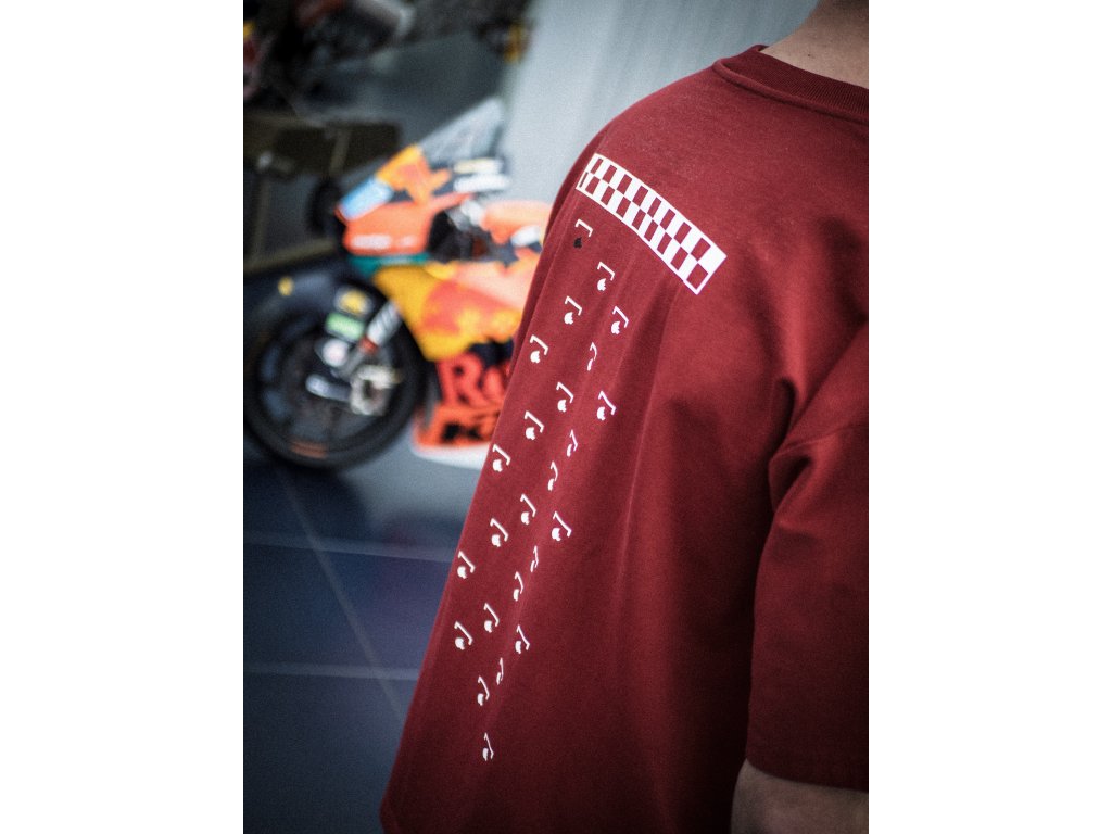 Dark red tričko spojuje čistou estetiku minimalistického streetwearu se syrovou energií motosportu — vytvořené pro ty, kteří žijí rychle, na trati i mimo ni.